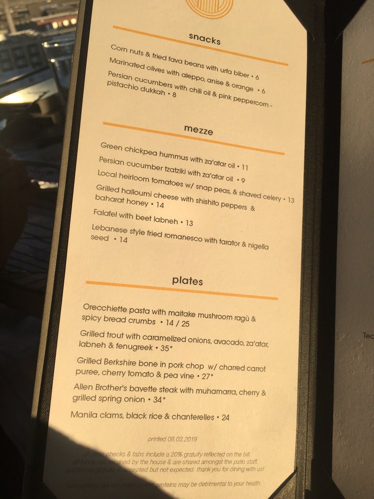 Mbar, a Middle Eastern-Mediterranean Cocktail Bar in Seattle, offers a unique dining experience with stunning views and upscale ambiance. Located on the 14th floor, customers are treated to panoramic vistas of the city skyline, including the iconic Space Needle. The menu features specialties like the flavorful Baba Ganoush with pickled torshi and sumac pomegranate dressing on the Fattoush Salad. The service is attentive and accommodating, with staff going above and beyond to ensure customer satisfaction. While the cocktails are on the pricier side, the experience of dining in this rooftop haven is well worth it. With a focus on fresh ingredients and creative dishes, Mbar is a must-visit for those looking for a memorable dining experience in Seattle.